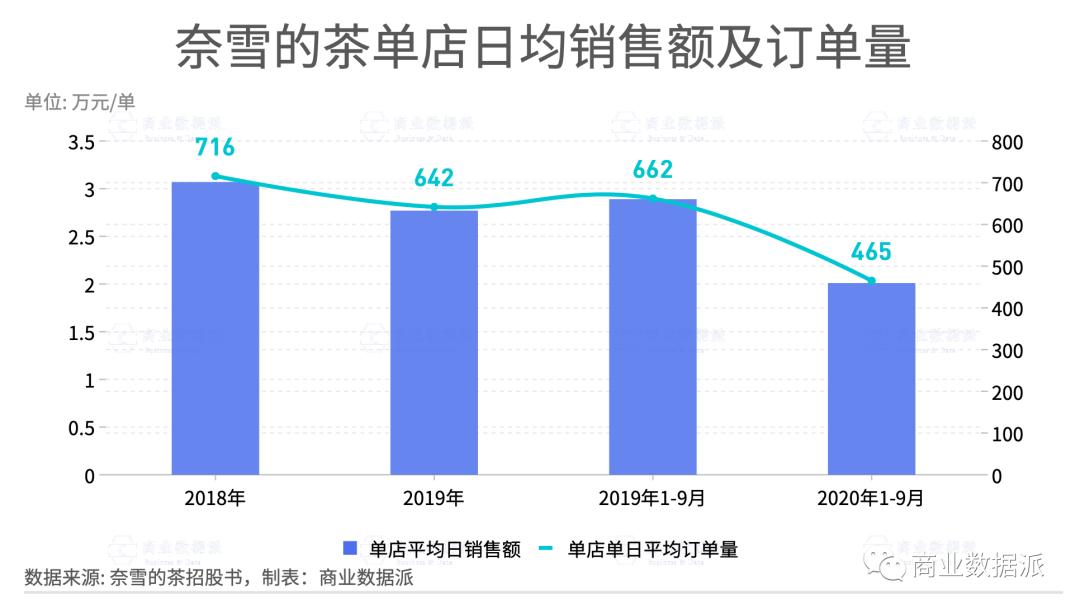 招股书显示,2018年奈雪的茶单店日均销售额为3.07万元,日均订单量为716单。可到了2020年1-9月,单店日均销售额就只有2.01万元了,日均订单量也下滑至465单,增速为-35.06%。原本2018年开业的店回本周期只有10.6个月,到了2020年前三季度,回本周期就上升到了14.7个月。