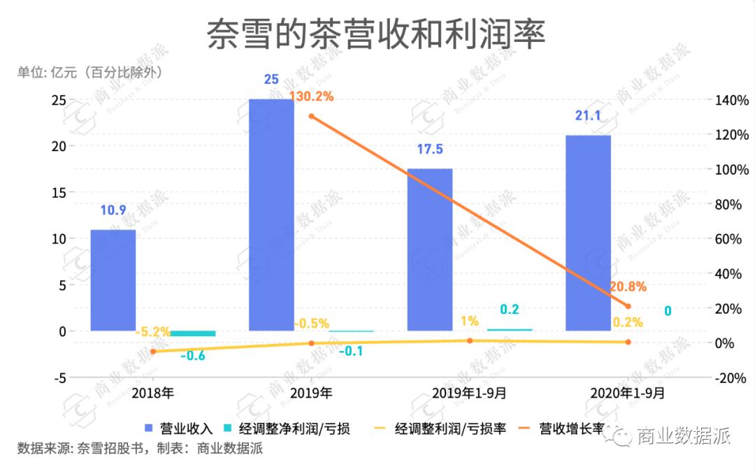 招股书显示,奈雪2018年、2019年及2020年前9个月营业收入分别为10.9亿、25亿、21.1亿元,同比增速从130.2%大幅降至20.8%,这与其开店速度大幅降低有关。