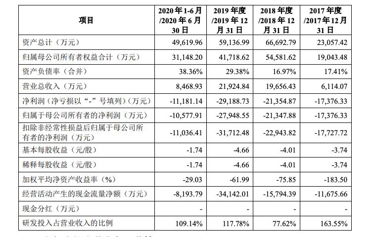 根据其招股书显示,2017年、2018年、2019年及2020年上半年,云知声营收分别为 6114 万元、1.97 亿元、2.19 亿元、8469 万元;净亏损分别为 1.74 亿元、2.14 亿元、2.92 亿元、1.12 亿元。公司3年半来亏损近8亿元,但营收才5.62亿元,同时研发投入较大,报告期内总计投入6.03亿元。