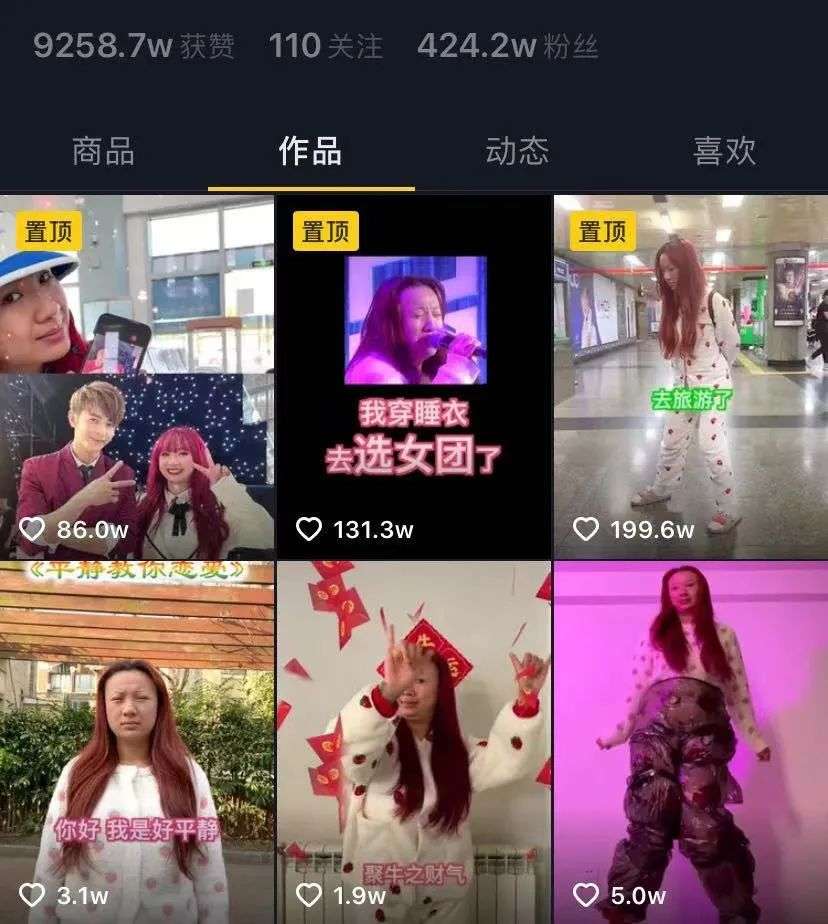坐拥420多万粉丝的“我是好平静”,堪称《无限偶像》的话题制造机。2019年,她凭借“穿睡衣去旅游咯”的鬼畜视频走红,自此立起“邋遢女孩”人设,拥有光额头、双下巴和花睡衣三大标签。