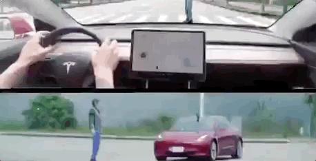 例如这段:Model 3接近一个旋转的假人。
