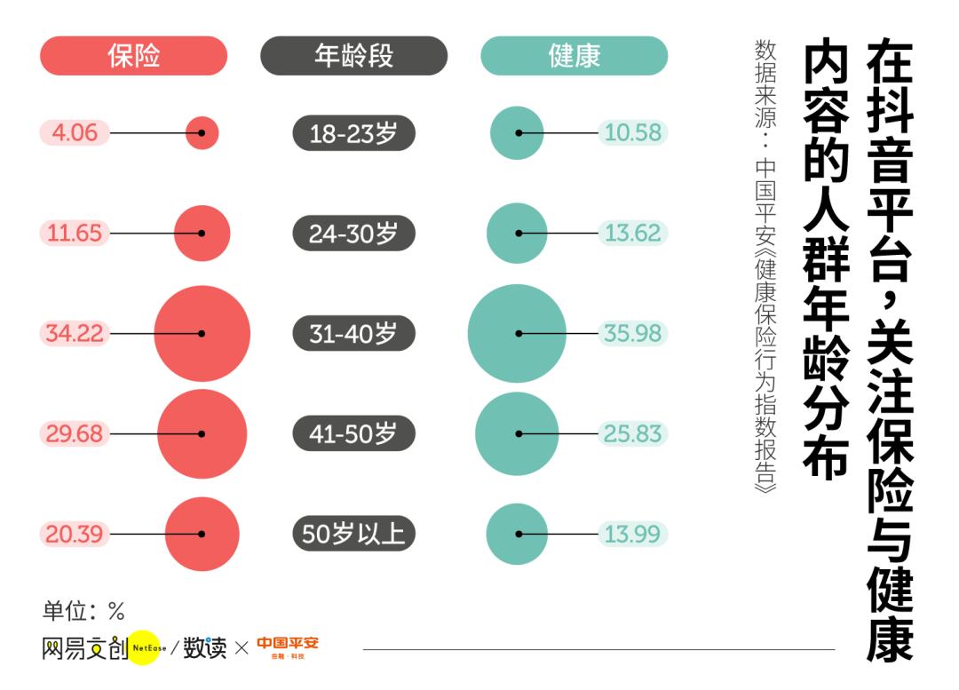这和抖音上关注保险和健康内容的各年龄人群分布也吻合。在网上最为关心保险和健康的,正是以 80 后为主。