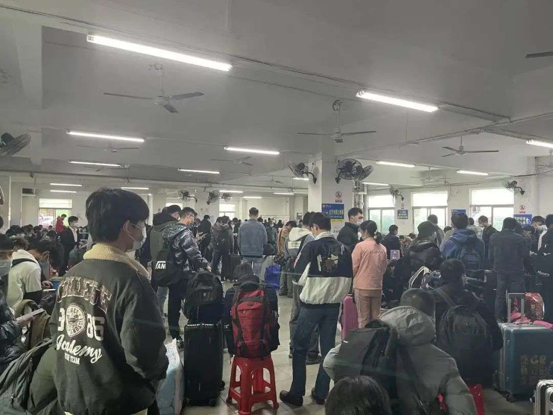 图 | 务工者们等待班车中