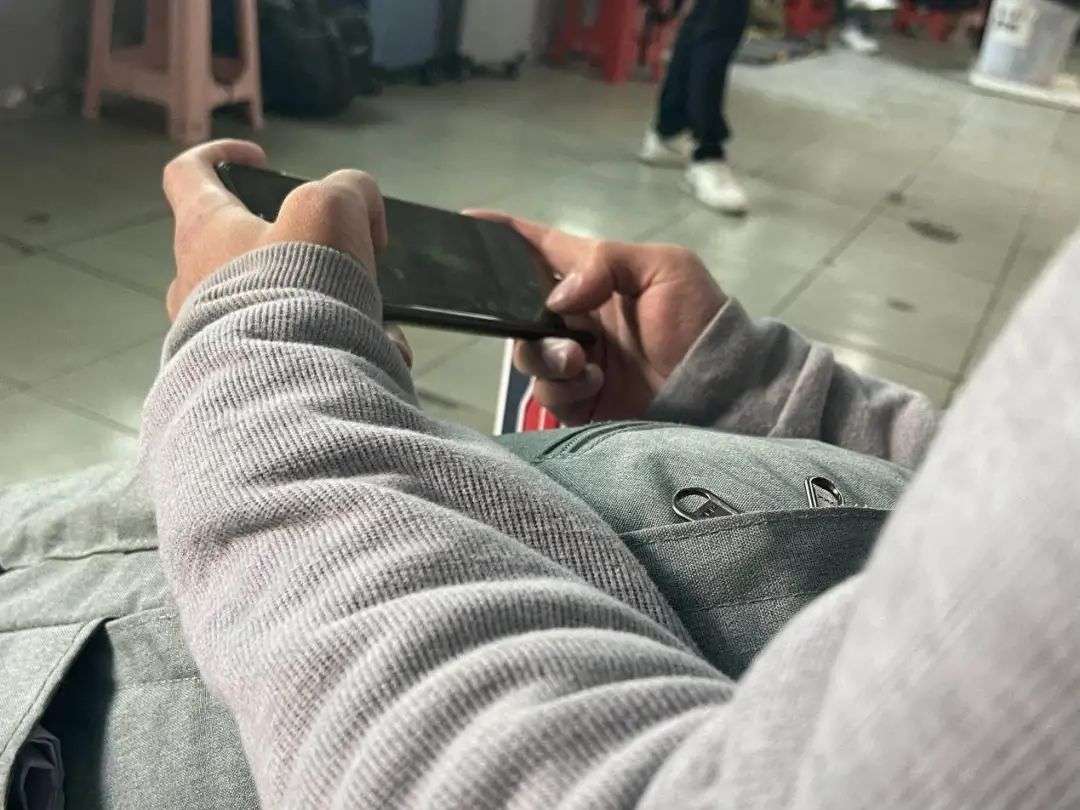 图 | 在等待招工时,谢坤正在打游戏