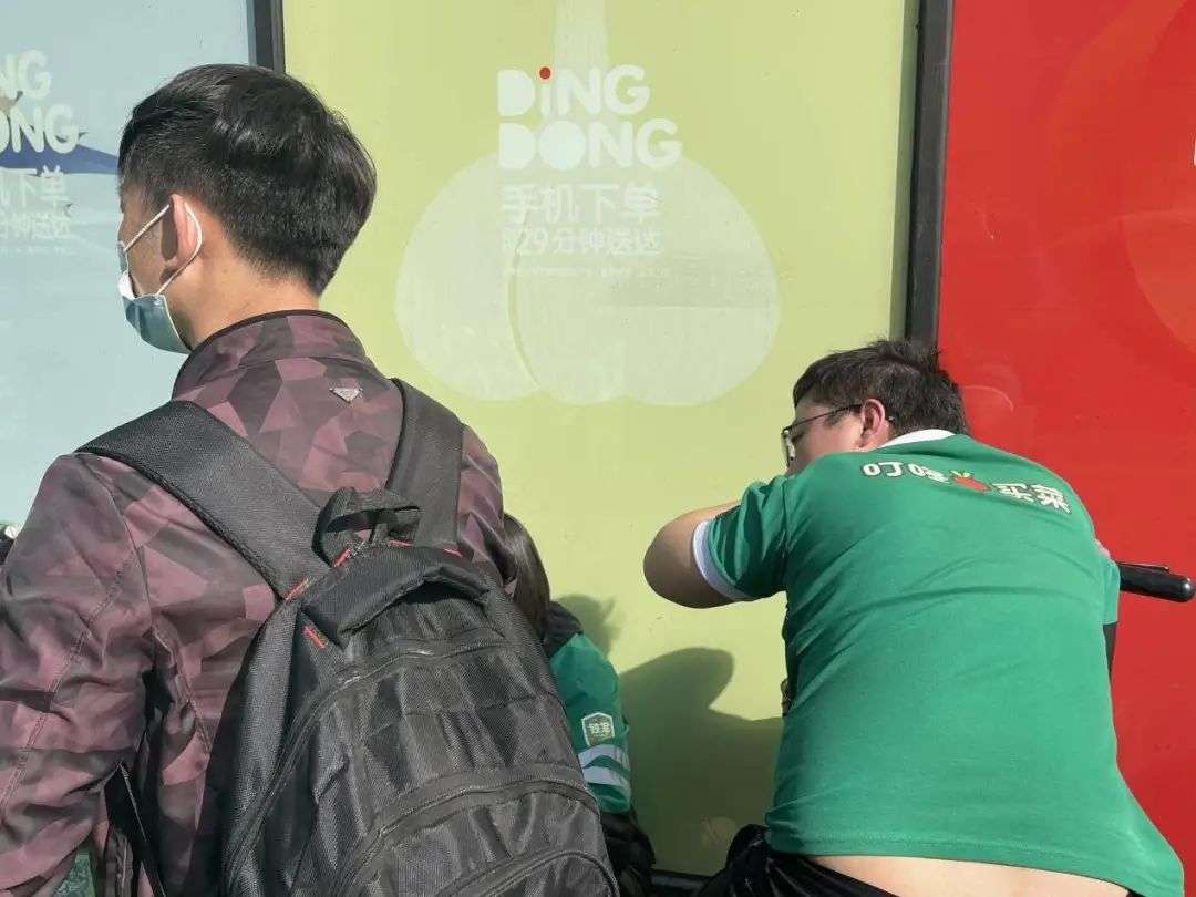 图 | 等待面试送菜员的王鹤(左)