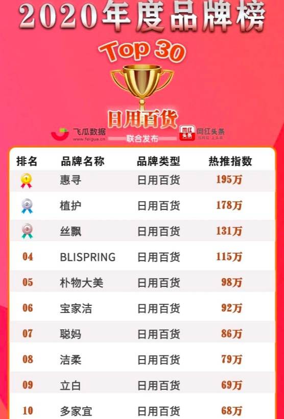 2020年抖音日用百货品牌榜blispring冰泉排行第四