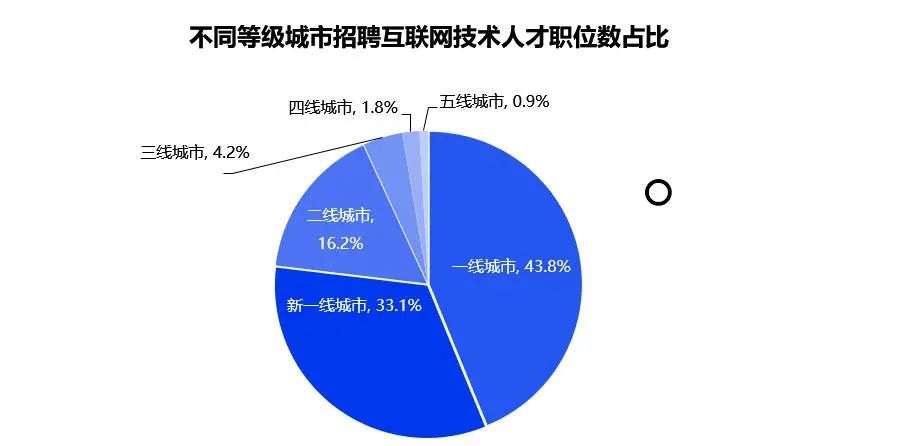 《2021年互联网产业求职指南》显示,77%的互联网人才需求集中在一线、新一线城市。其中,一线城市占比43.8%,新一线城市占比33.1%。