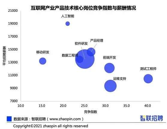 昨日,智联招聘发布了《2021年互联网产业求职指南》,给了互联网人一些参考,哪些岗位最高薪?哪些城市岗位多?哪些岗位竞争最激烈呢?