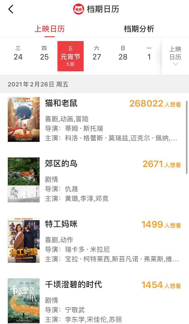 目前来看,在春节档之后,电影市场又将经历一个漫长的冷淡期,元宵节上映的五部电影声量较大的是华纳兄弟的动画电影《猫和老鼠》,距离最近的五一档目前定档的是《秘密访客》《阳光劫匪》等中小成本悬疑片,电影热度尚在积累中。而如何吸引观众走进影院,电影内容质量无法预计,票价回落就成了一个必然选择。