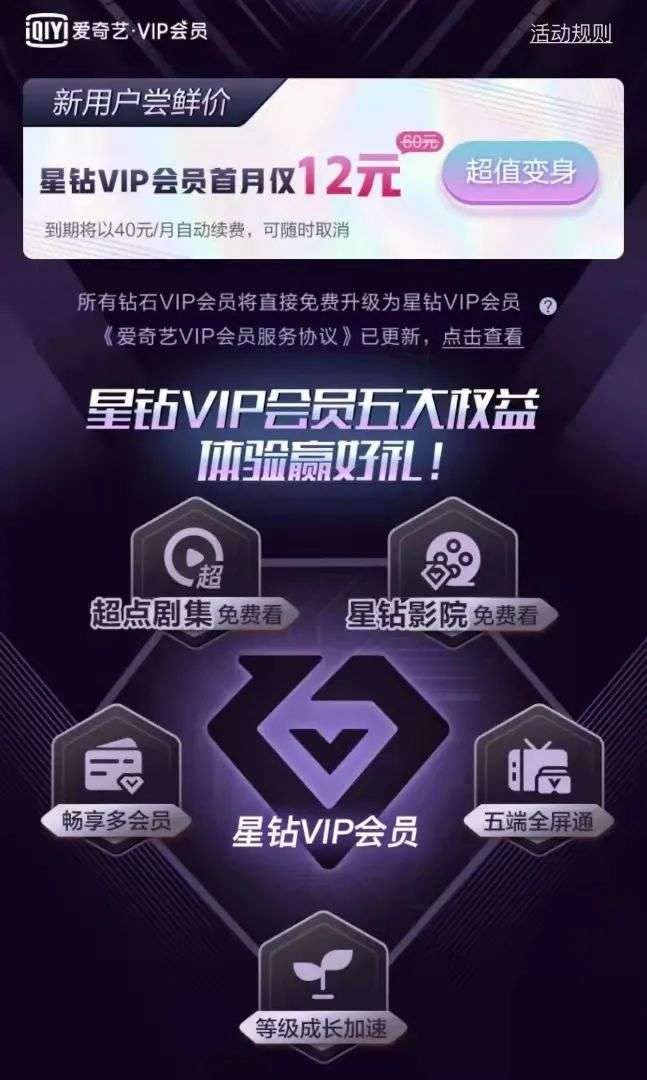 提升ARRPU在2019年中期就已经开始,推出了“超前点播”模式,会员可以在《陈情令》《庆余年》等爆款剧播出期间以3元每集的价格提前看剧。随后爱奇艺也率先对会员订阅费进行分层,去年5月,爱奇艺推出了星钻VIP会员。