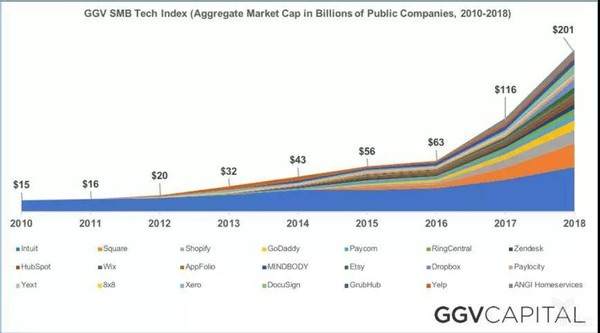 可见无论是升级解决方案还是用于战略投资或收购都是在寻求新的转变,将目光聚焦中小企业,随着数字技术服务的加速下沉,中小企业将是SaaS产品的未来增长点。据纪源资本数据显示,2010年到2018年的中小型SaaS市场的总市值从150亿跃升到到2000亿美元以上,而且这一增长趋势还在继续。
