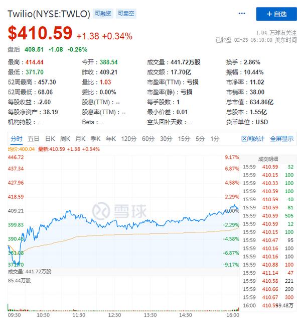 过去一年,美国资本市场对云通讯赛道的热情攀升。疫情以来,Twilio的PS屡破新高,一度接近40,截止目前Twilio的股价为409.21美元,总市值为617.95亿美元。