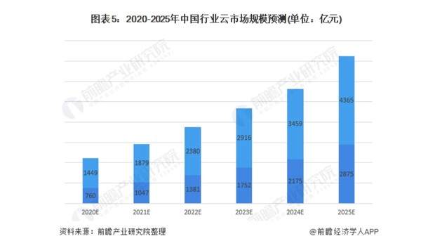 就国内而言,据此,前瞻预计到2025年,互联网相关行业云市场规模将达到2875亿元左右,垂直行业云计算市场规模预计将达到4365亿元,行业云整体规模突破7200亿元。