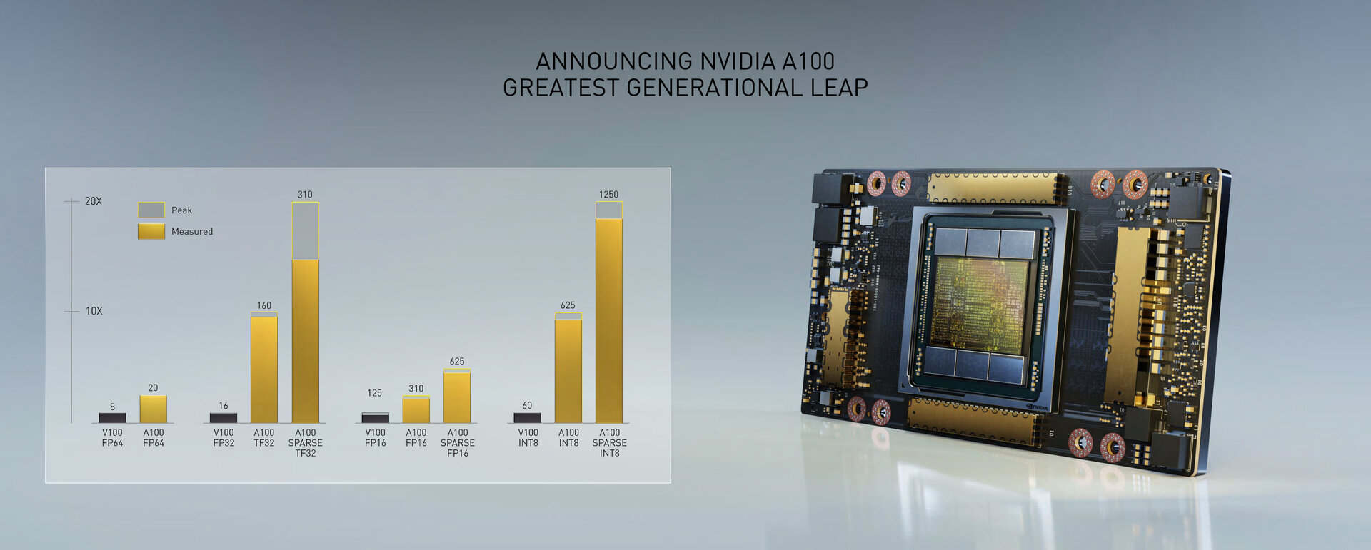 英伟达的最新数据中心芯片A100——虽然号称峰值性能提高了20倍,但距离上一代产品V100的发布已经过去了三年时间。