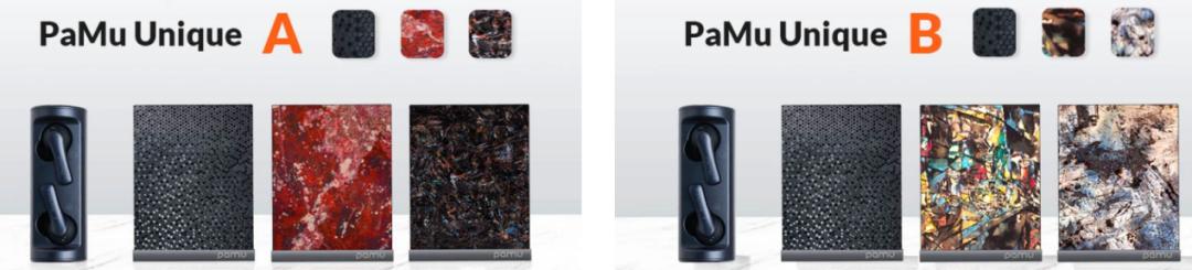 Padmate 则是在产品外观的个性化上做差异。比如 Padmate 旗下有一款叫 PaMu Unique 的 TWS 耳机,这款耳机的外包装设计成了一个卷轴,Padmate 官网的商品详情显示,用户有 2 套卷轴封面可以选择,每套中有 3 个样式。而从 Padmate 京东旗舰店的商品详情来看,国内版的“皮肤”还加入了更多 Z 世代喜欢的网络热词等元素。