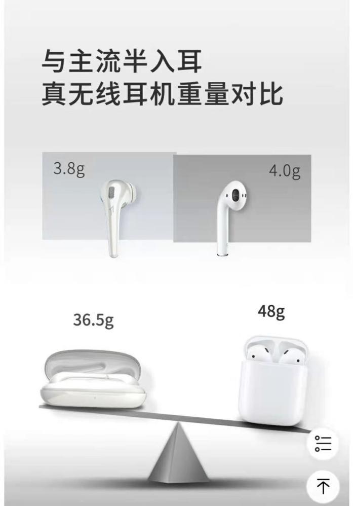 挖掘细分场景是一种策略,“靠外表上位”也是一种。最近,笔者买了一个 1more 的耳机,发现商品简介中就在重量这个维度与 Airpods 做对比,突出它轻便的特点。