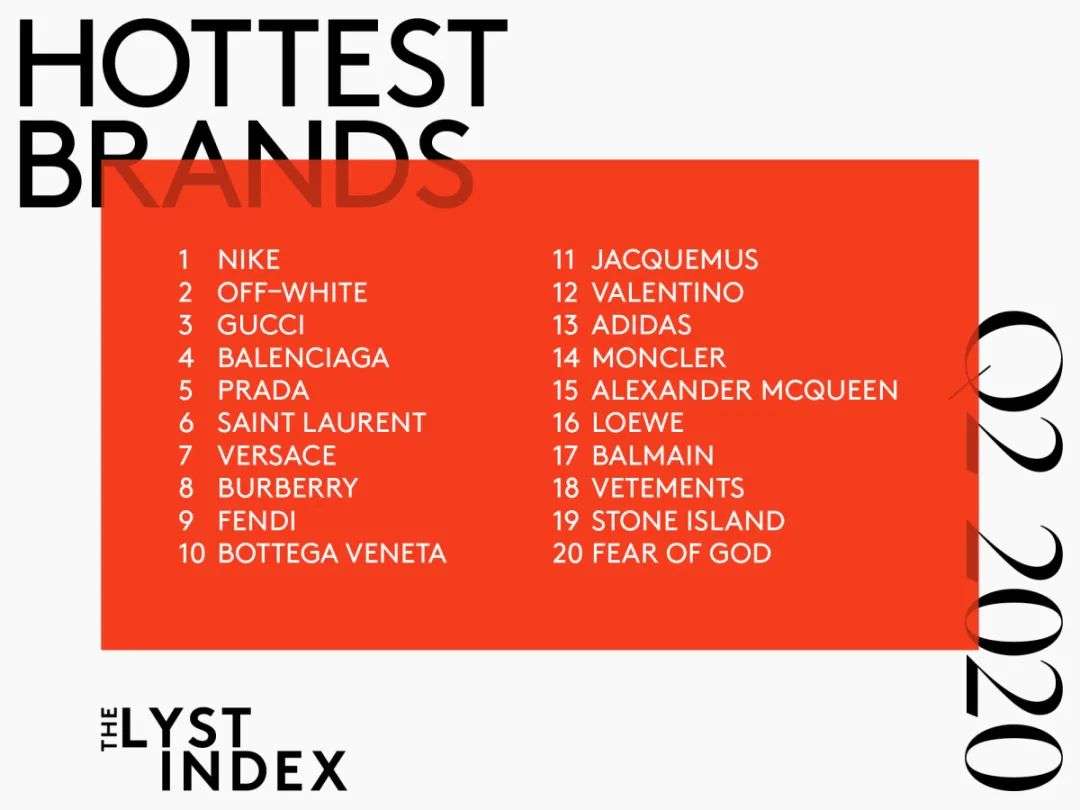 去年8月,国际知名的时尚搜索引擎 Lyst发布了2020年第二季度最热品牌榜单。令人意外的是,打败一众奢侈品牌登顶榜首的不是别家,而是耐克——这也是运动品牌首次登顶这项时尚类榜单。