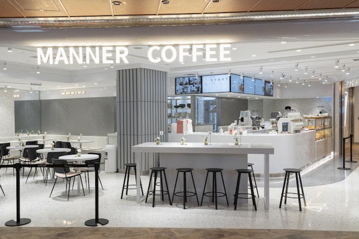 以外带式小店模式起家的Manner ,从去年开始,也在一些有座位的门店售卖面包,还在上海环球金融中心与黑珍珠主厨联手,开了一家以轻餐为主的MANNER CAFE。