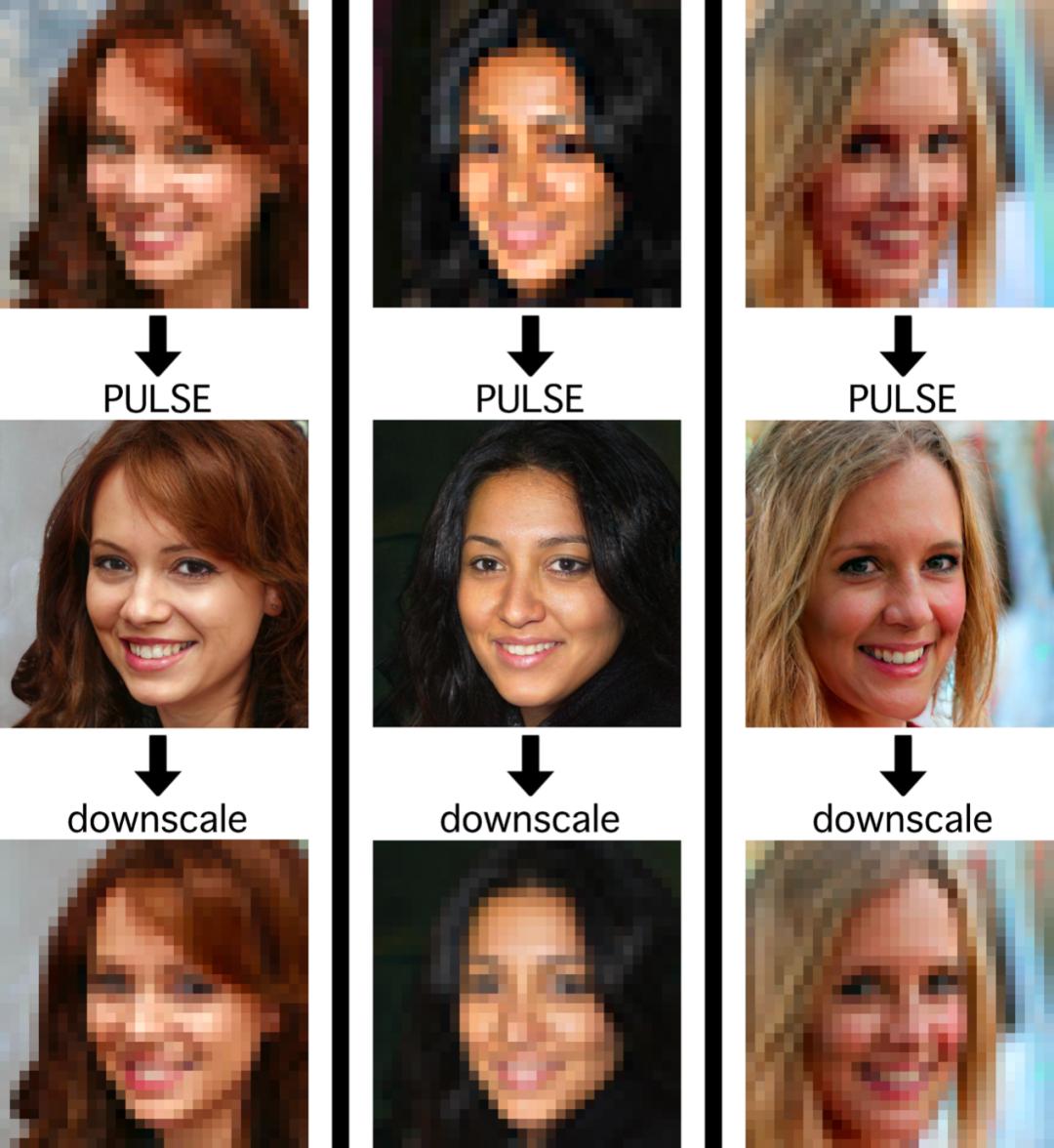 但问题也就在于此,这款“去码神器”所生成的人脸图像看似逼真,但实际上只是一种虚拟的新面孔,并不真实存在。也就是说,PULSE生成的高清人像,是算法“脑补”出来的作品,这也就是为何研究者会强调这项技术不能应用于身份识别。