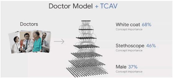 除了模型卡,在可解释性AI这项工作上,谷歌有更多的表现,比如在Google I/O 2019开发者大会上发布的一项技术TCAV(概念激活向量测试)。与模型卡有所不同,TCAV所侧重的是呈现不同因素在识别算法运作中所占的比重。比如识别一张图片上的动物是否是斑马,TCAV可以分析哪些变量在识别图像时发挥了作用,以及各自发挥了多大的重要性,从而清晰展示模型预测原理。由结果可见,在各项概念中,“条纹”(Stripes)占据的权重最高,“马的形体”(Horse)次之,“草原背景”(Savanna)的权重最低,但也有29%。