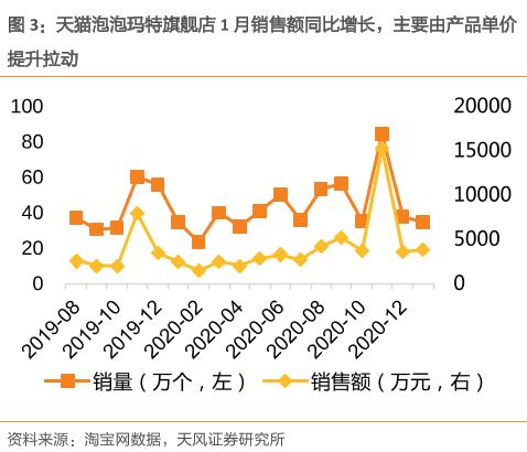 根据天风证券一项数据显示,2019年12月-2020年8月,盲盒均价在50元-60元之间波动,2020年9月-2021年1月,盲盒均价连续5个月超过70元。此外,阿里巴巴全网潮玩盲盒品牌数与店铺数同比增速7个月来首次转负,小品牌小店铺开始出清。2021年1月,阿里巴巴全网潮玩盲盒品牌数1520个,同比减少3.49%;店铺数1582家,同比减少17.69%。
