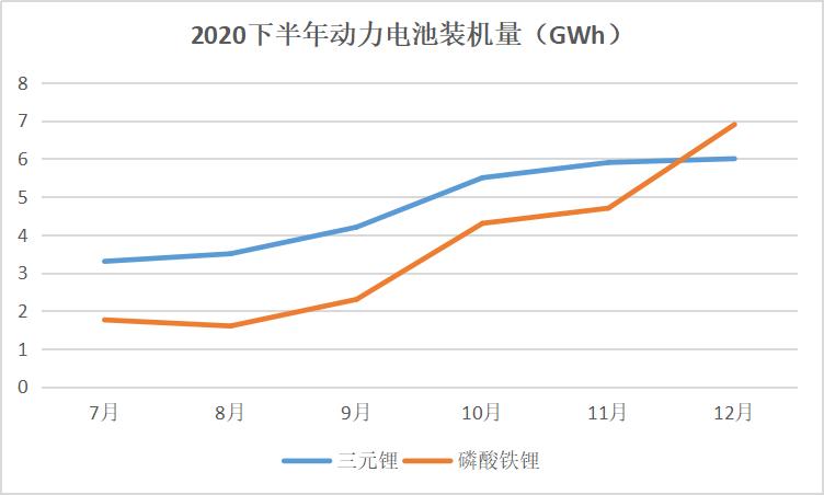 中国汽车工业协会最新统计数据显示,2020年12月中国动力电池装车量13GWh,同比增长33.4%,环比上升22.0%,继续保持增长趋势。其中,三元锂电池共计装车6GWh,同比增长24.9%,环比上升2.2%;磷酸铁锂电池共计装车6.9GWh,同比上升45.5%,环比上升46.0%,增速远超三元锂电池。