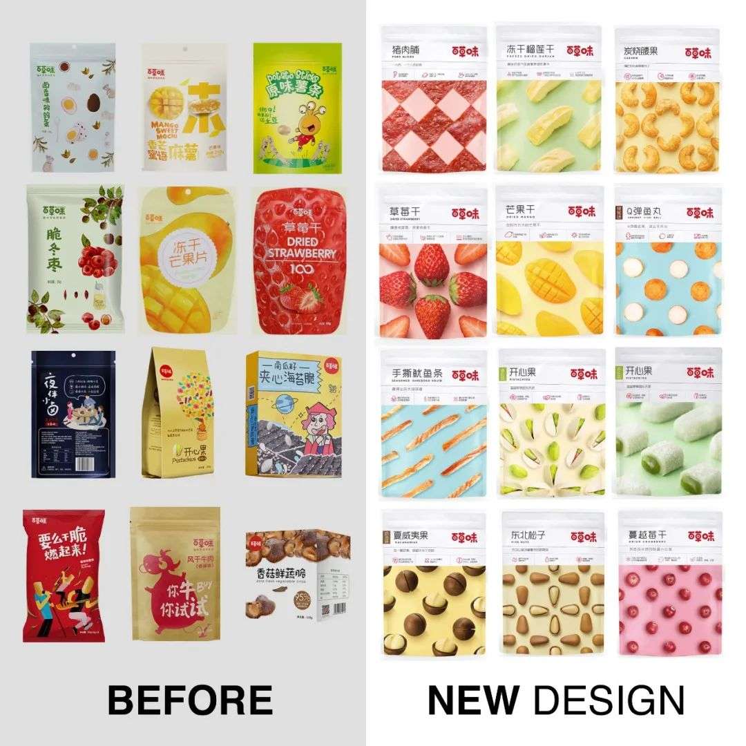 百草味包装升级后的新旧包装对比 ,图片来源:Marking Awards
