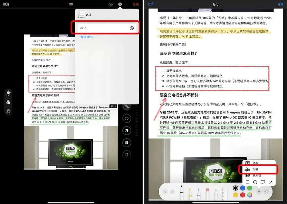 使用 Apple Pencil 将名字写到这里,你就获得了一个可以改变大小、颜色、位置的签名图片,随时随地,方便签署各类文件。