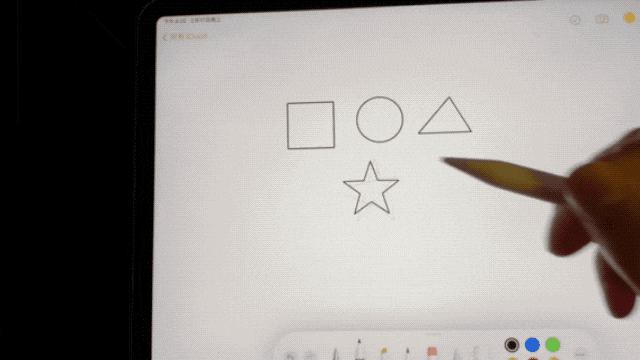 除了文字输入,iPadOS 14 还对形状输入进行了一定的优化,如果你一直在纠结画线不直、画圆太扁,只需在绘制完成后停留片刻,你绘制的不规则形状就会变成标准形状了。