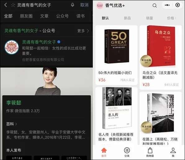 2020年11月10日,公众号“灵魂有香气的女子”创始人李筱懿就在视频号开启了直播带货首秀,直播3小时,总观看人数达到6.5万人,喝彩达34.1万,订单量达近两万单,码洋(图书销售总额)价格在190万左右。