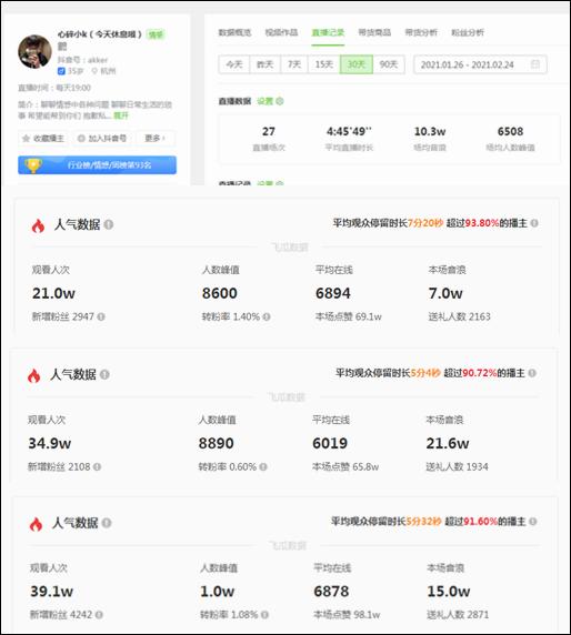 同时,情感直播具有较强的私密性和陪伴感,因此,一旦主播可以与粉丝和用户搭建起足够的信任关系,直播间粘性大大增强,也有助于逐步培养粉丝的付费习惯。