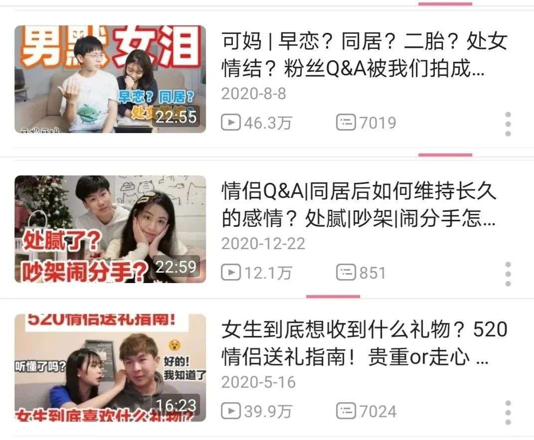 没有人能拒绝甜甜的恋爱,不少粉丝靠视频里展现的美好感情满足自己的幻想。