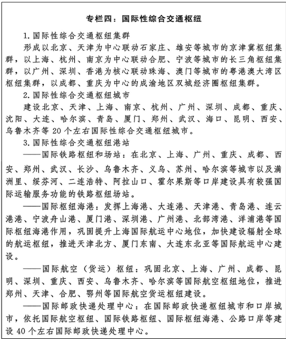 其中的“6条主轴”,就是单指“4极”之间的联系。由此也可以看出“4极”在国家交通体系中的分量之重。