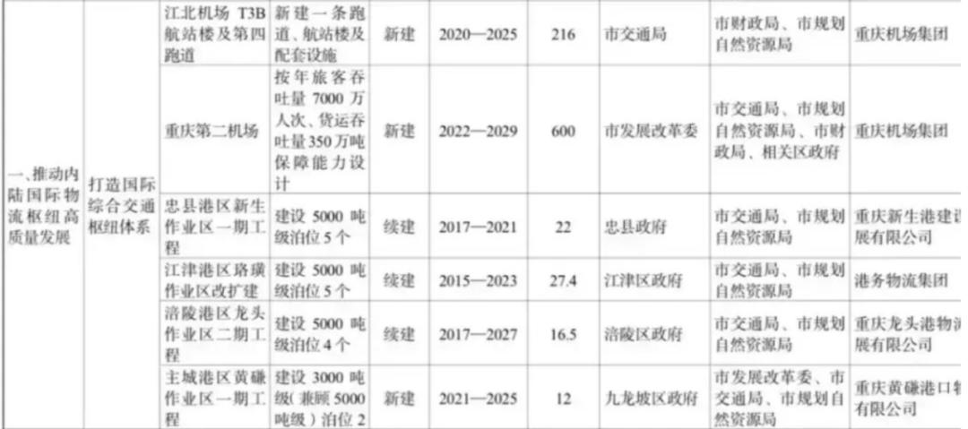 成都国际航空枢纽的巩固,很好理解,天府国际机场今年就要投运;而重庆则让人想起第二机场的建设。