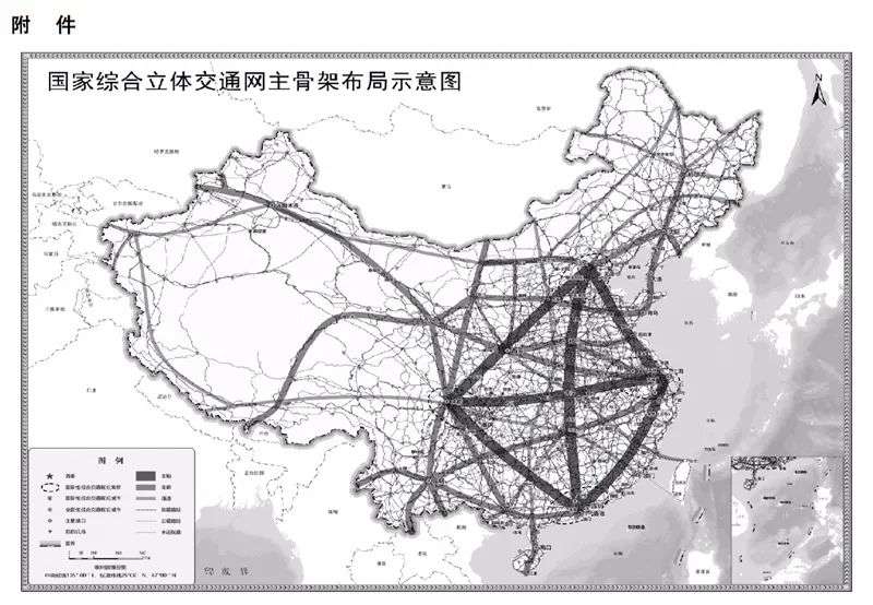 这次纲要将国家综合立体交通网主骨架布局分为6条主轴、7条走廊、8条通道。