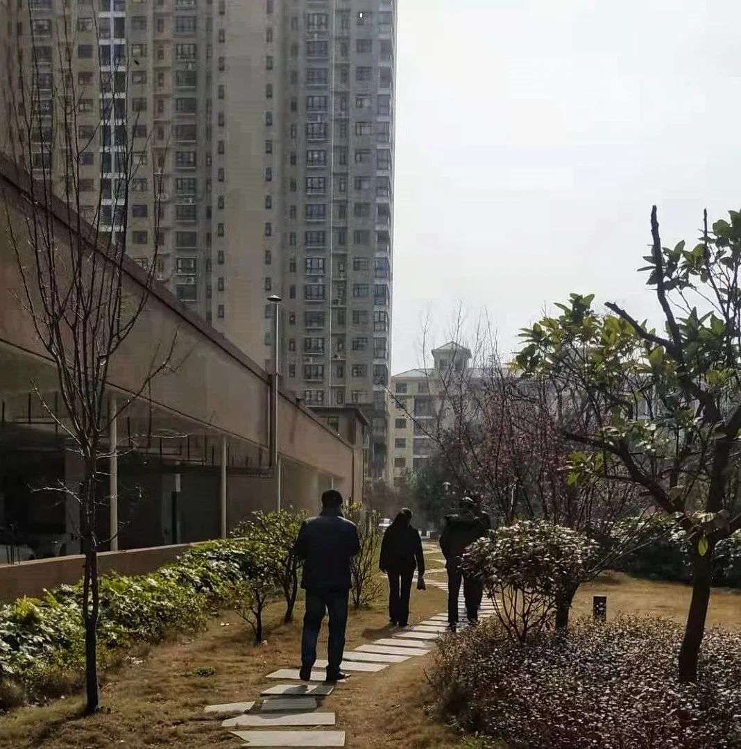 志愿者陪同老杨在小区散步。图源边码故事