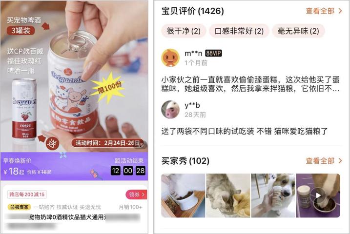 甚至还有“宠物奶啤”,而且这些东西的销量和口碑都相当不错: