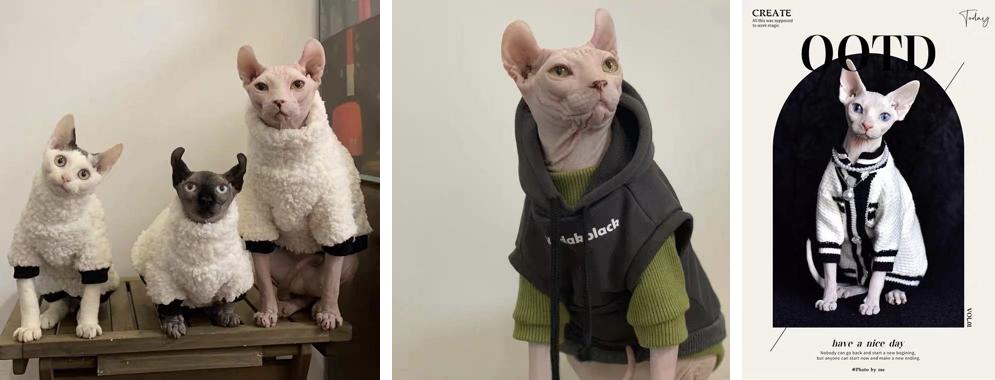 无毛猫没有毛,所以需要毛衣,还有卫衣、睡衣、毛呢套装: