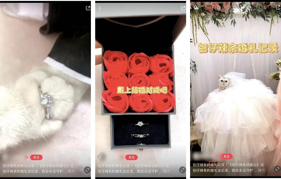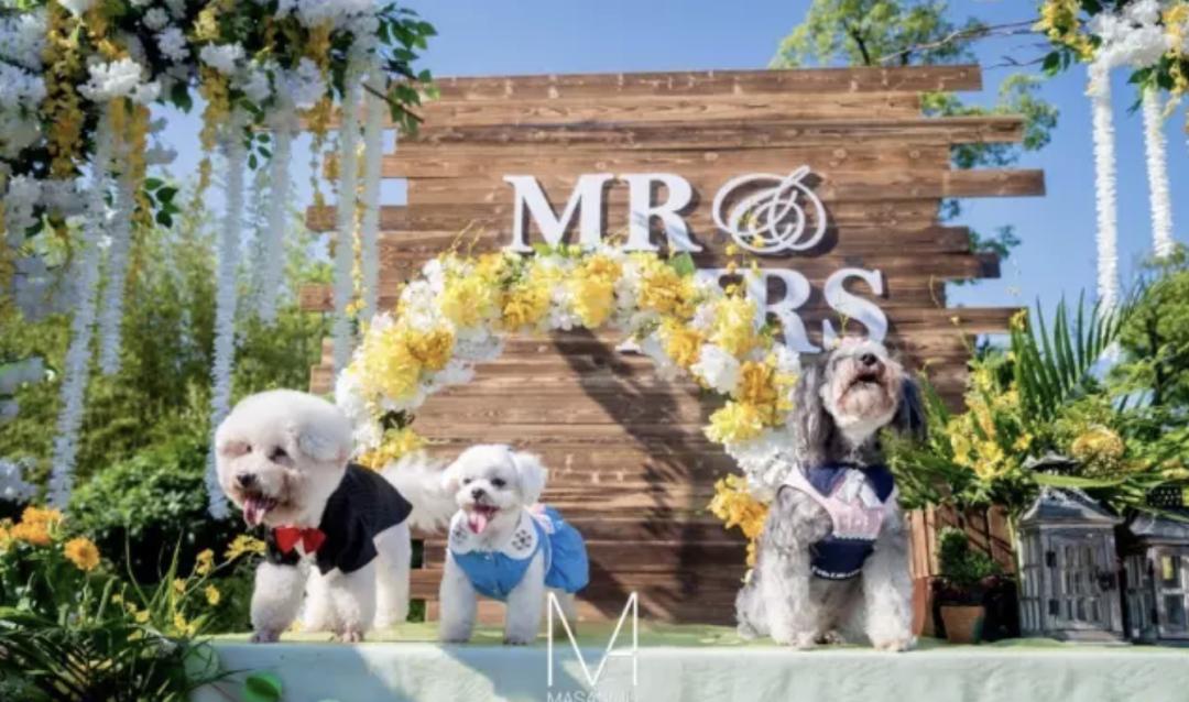 有的主人还会请专门的婚礼策划公司,给自己的宠物做婚礼策划。这些宠物婚礼不仅有婚纱、婚戒 (有的 婚戒是项圈) :