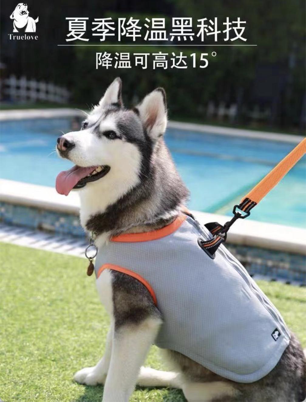 哈士奇的毛太多了,所以需要「散热服」,据说是特殊面料,夏天穿上可以帮大型犬降温: