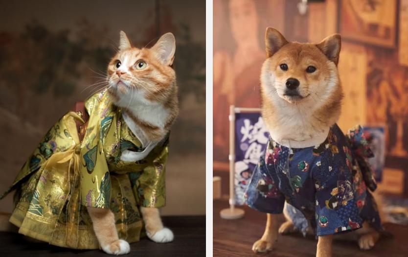 如果说上面这些东西虽然猎奇,但是还有一定功能性的话,那下面这些就纯粹是为了观赏了,比如 宠物汉服、和服:
