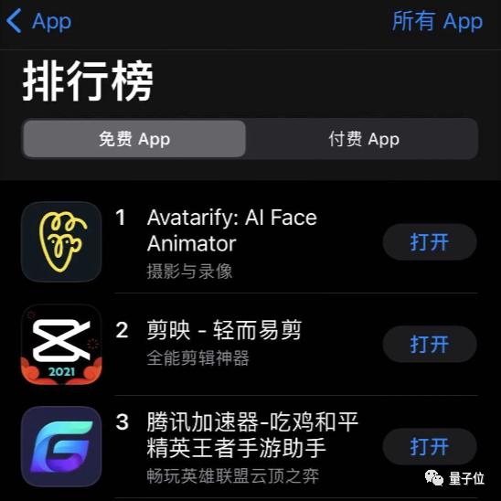 随着这波潮流,Avatarify及其他相关软件,已经超过微信、拼多多、抖音的下载量,登顶苹果App Store免费榜“前三甲”!
