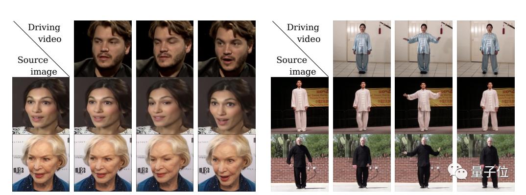 随后在测试阶段,研究人员将模型应用于由源图像和驱动视频的每一帧组成的对,并执行源对象的图像动画。