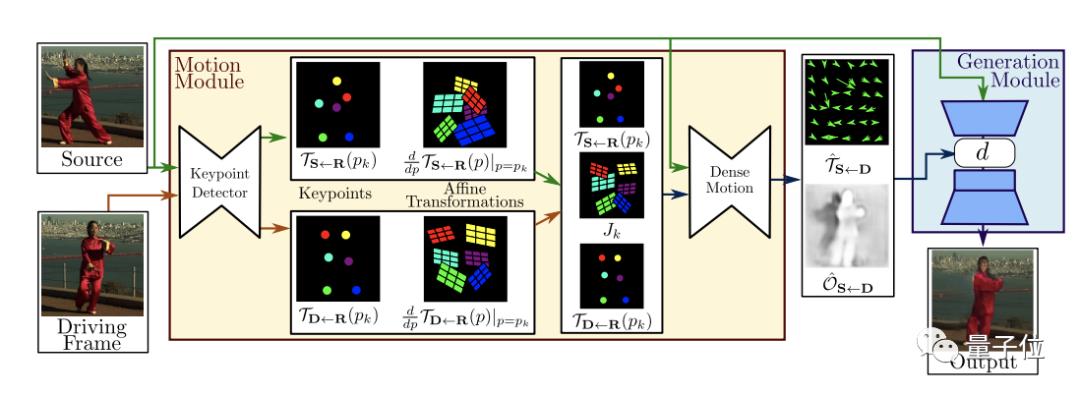 而这两种变换,通过使用以自监督方式学习的关键点来获得。利用局部仿射变换对每个关键点附近的运动进行建模。