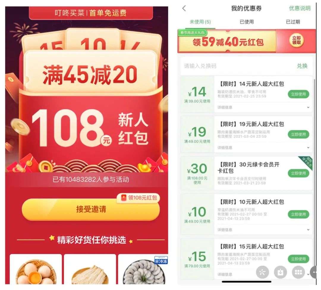 叮咚买菜拉新活动补贴截图