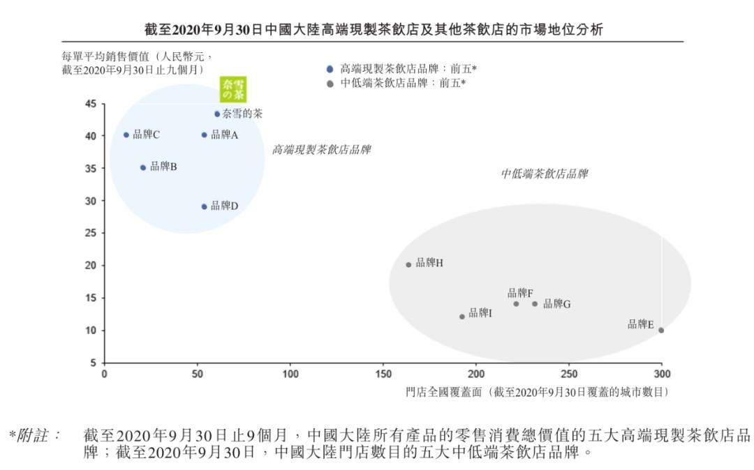 在奈雪招股书中,不难看出品牌A和品牌E分别代表着喜茶与蜜雪冰城。