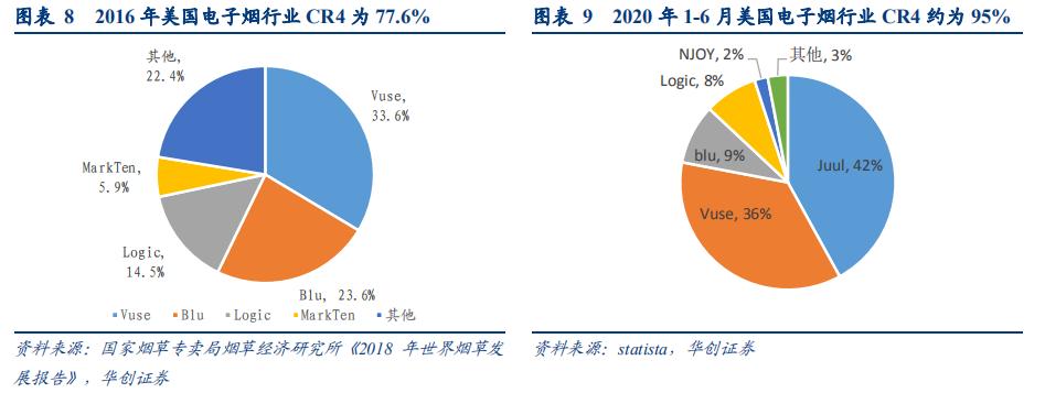 而电子烟行业也一同如此,Juul作为市场龙头,但是后续仍有Vuse、Blu、Logic等玩家紧密追赶着。