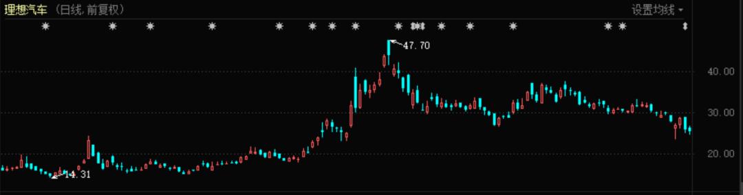 消息公布时,理想盘前交易股价一度大涨超过10%。但市场对其盈利并不认账,当天股价下跌9.8%,第二天再度下跌1.92%,令人尴尬。