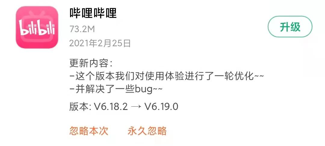 最后,对很多App来说,不断推出新版本是基于修复bug的需求而存在的。如果用户打开bilibili的更新日志,可以发现其中80%的更新日志写的都是“对使用体验进行了一轮优化,并解决了一些bug”。