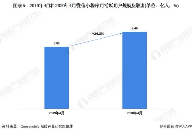 根据QuestMobile的数据统计,2020年4月,微信小程序月活跃用户达到8.49亿人,同比增长24.3%。与此同时,月活跃用户超过100万的微信小程序达到1214个,同比增长53.9%。现在看来,不管是微信小程序的品类,还是活跃用户的规模都在逐年稳步上涨,形势一片大好。